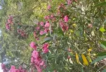 夹竹桃,又名红花夹竹桃、欧洲夹竹桃,是夹竹桃科夹竹桃属的一种常绿直立大灌木,枝条灰绿色,含水液。叶披针形,3叶轮生。聚伞花序顶生,花冠粉红至深红色,花冠漏斗状,有特殊香味。蓇葖果,圆柱形。种子长圆形,…全部>>