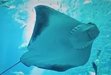 蝠鲼,又被称为魔鬼鱼与毯魟。属于软骨鱼纲、蝠鲼科,它包含两个属,前口蝠鲼属和蝠鲼属。体呈菱形,宽达6m余。体青褐色。口宽大。眼下侧位,能侧视和俯视。头侧有1对有胸鳍分化的头鳍,向前突出。背鳍小,…全部>>
