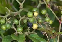 龙葵,茄科茄属一年生草本植物,茎近无毛或被微柔毛,叶互生,卵形或卵状椭圆形,叶常无毛;花小且下垂,花冠白色或淡紫色;浆果为球形,熟时黑紫色,有光泽;种子多数,卵形芝麻状,黄色;花期6-9月,…全部>>
