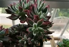 锦晃星是景天科、石莲花属多肉植物。多年生小灌木状多浆植物,灰绿色卵状倒披针形肥厚肉质叶轮状互生,全缘,椭圆尖头,长3-4厘米,宽2-2.5厘米,厚约1厘米,玲凉季节阳光下,叶端及上缘呈红色。…全部>>