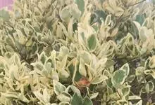 金边黄杨是卫矛科卫矛属的常绿灌木或小乔木,金边黄杨小枝略为四棱形,枝叶密生;单叶对生,倒卵形或椭圆形,边缘具钝齿,表面深绿色,有光泽;聚伞花序腋生,具长梗,花绿白色;蒴果球形,淡红色;花期5~6月。…全部>>
