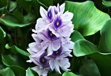 凤眼莲 Solms),是雨久花科凤眼莲属的浮水草本植物。凤眼莲茎极短,具长匍匐枝;叶基生,莲座状排列,宽卵形或宽菱形,先端钝圆或微尖,基部宽楔形或幼时浅心形;花葶具棱,穗状花序;花冠近两侧对称,…全部>>