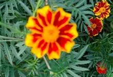 万寿菊是菊科万寿菊属一年生草本植物,别名孔雀菊、缎子花、臭菊花、西番菊、红黄草、小万寿菊、臭芙蓉、孔雀草。万寿菊茎近基部分枝。叶羽状分裂,长5-10厘米,宽4-8厘米,裂片长椭圆形或披针形,具锐齿,…全部>>