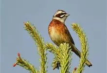 栗斑腹鹀:属小型鸣禽。体重19-25克,体长145-167毫米。头顶至背栗红色,眼先和颧纹黑褐色,黑色颧纹上还有一白纹,耳羽褐色或灰褐色,眉纹白色或灰白色。背、肩具黑色纵纹,腰至尾上覆羽砖红色无纵纹,…全部>>
