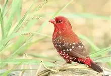 红梅花雀小型鸟类,体长9-10厘米。雄鸟通体朱红色,背、肩、胸等满布白色小斑点,两翅和尾黑褐色均具白色端斑,嘴红色,脚蜡黄色。雌鸟上体淡褐色或赭褐色,翅上中覆羽、大覆羽和内侧飞羽末端具白色斑点,…全部>>