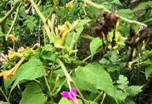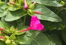 即紫茉莉,英文名:Four-o'clock,Marvel of Peru,为紫茉莉科、紫茉莉属多年生草本植物,一年生栽培。株高50~80cm。根粗壮,茎多分枝而散生。叶对生,卵形或心脏形。花数朵簇生…全部>>