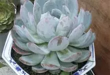 蓝石莲是景天科、拟石莲花属的多肉植物。茎部粗壮,成熟植株茎部木质化。叶片莲座型密集排列,株径不会很大,叶片相对较薄,常年绿色,表面布有白色粉末,中部凹陷,呈倒水滴状。叶尖较尖,叶缘光滑无褶皱,…全部>>
