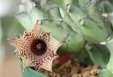 豹皮花 L.C.Leach)是马利筋亚科豹皮花属植物。肉质植物,茎亮绿色,几株簇生在一起,高约10厘米,状似仙人掌,四棱,棱稍钝,棱具粗厚软刺,光滑,绿色。无叶。…全部>>