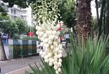 丝兰是天门冬科丝兰属植物。茎短或无茎;圆锥花序烛台状,花朵杯形,下垂,白色;叶基部呈剑形放射状,被白粉,革质;花期8—10月。丝兰原产于北美,在中国长江流域一带和华北地区均有栽培,长江以南地区也有分布。…全部>>