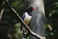 红嘴蓝鹊,别名山鹊、长尾鹊,是鸦科蓝鹊属的一种观赏性较强的大型鸣禽。该物种为体长54~65cm,头、颈、喉和胸黑色,头顶至后颈有一块白色至淡蓝白色或紫灰色块斑,其余上体紫蓝灰色或淡蓝灰褐色。尾长呈凸状,…全部>>