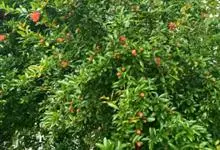 石榴是千屈菜科石榴属落叶灌木或乔木,一般植株高3-5米,少数可达到10米;枝顶常有尖锐长刺,幼枝有棱角但无毛,老枝近圆柱形;叶通常为对生,长圆状披针形;花大,…全部>>