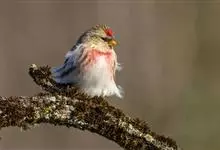 红额金翅雀:共有14个亚种。小型鸟类,体长12-14厘米。额、脸颊和颏朱红色,眼先和眼周黑色,在淡色的头部极为醒目。上体灰褐或乌褐色,尾上覆羽白色,两翅和尾黑色,翅上有黄色斑。下体喉、胸灰褐或乌褐色…全部>>