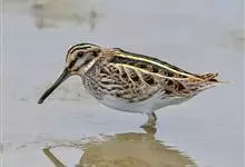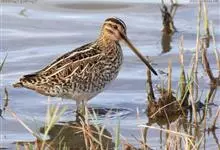 扇尾沙锥是鹬科、沙锥属鸟类,又称普通沙锥、扇尾鹬、小沙锥。体型小;喙粗长而直;上体黑褐色,具栗色和黄白色斑纹;头顶具黄白色中央冠纹,背具4条白纵带;下体白色,颈、胸淡褐色,带褐色纵纹;翼后缘白色,…全部>>