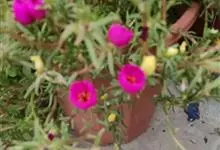 大花马齿苋:一年生草本,高10-30厘米。茎平卧或斜升,紫红色,多分枝,节上丛生毛。叶密集枝端,较下的叶不规则互生,叶片细圆柱形,无毛。花单生或数朵簇生枝端,直径2.5-4厘米,…全部>>