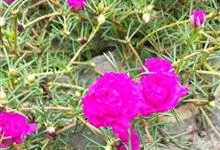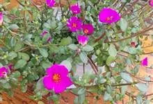 大花马齿苋:一年生草本,高10-30厘米。茎平卧或斜升,紫红色,多分枝,节上丛生毛。叶密集枝端,较下的叶不规则互生,叶片细圆柱形,无毛。花单生或数朵簇生枝端,直径2.5-4厘米,…全部>>
