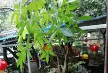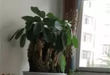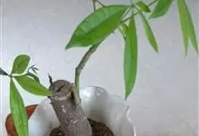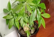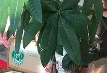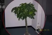 瓜栗 Walp. ),俗称发财树,木棉科小乔木,高4-5米,树冠较松散,幼枝栗褐色,无毛。小叶具短柄或近无柄。花单生枝顶叶腋;花梗粗壮,被黄色星状茸毛,脱落;萼杯状,近革质;花瓣淡黄绿色,狭披针形…全部>>