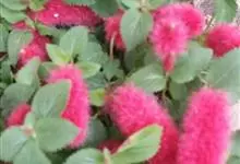 红穗铁苋菜:为大戟科、铁苋菜属植物,灌木,高0.5-3米。嫩枝被灰色短绒毛,毛逐渐脱落,小枝无毛。 花序色泽鲜艳,葇荑花序下垂,如狐狸尾状,雌花近卵形,长约0.8毫米,顶端急尖,具短毛;子房近球形,…全部>>
