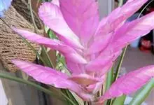 紫花凤梨,是凤梨科铁兰属的多年生草本植物。株高不及30厘米;叶片拱状线形,叶丛族生于短缩茎上,斜出或横生,叶为绿色,基部具有紫褐色彩晕;短穗状花序,总苞片粉红色,呈扇形;小花青紫色,…全部>>