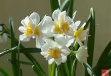 水仙 Masamura & Yanagih.):又名中国水仙,是多花水仙的一个变种。是石蒜科多年生草本植物。水仙的叶由鳞茎顶端绿白色筒状鞘中抽出花茎再由叶片中抽出。一般每个鳞茎可抽花茎1-2枝,…全部>>