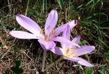 秋水仙是百合科、秋水仙属植物,多年生草本。地下部分也具有圆球形的鳞茎。它的这种鳞茎,有的直径可长至6厘米以上。球根花卉,球茎卵形,外皮黑褐色。叶披针形,暗绿色,长约30厘米。每开花1-4朵,花纺形,…全部>>