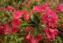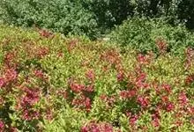 红王子锦带花是忍冬科锦带花属的落叶开张性灌木。株高1 -2米;嫩枝淡红色,老枝灰褐色;单叶对生,呈椭圆形,先端渐尖,叶缘有锯齿,红枝及叶脉具柔毛;花冠漏斗状钟形,花冠筒中部以下变细,聚伞花序,…全部>>
