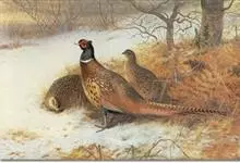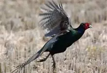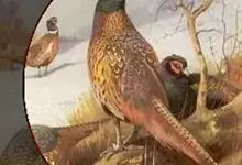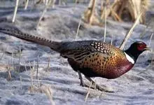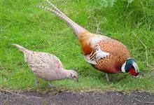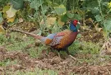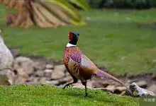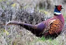 环颈雉是雉科、雉属的一种走禽,共有30个亚种。体重900-1050克,体长53-89厘米。体型较家鸡略小,但尾巴却长得多。雄鸟和雌鸟羽色不同,雄鸟羽色华丽,多具金属反光,…全部>>