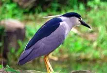 夜鹭是中型涉禽,体长46-60厘米。体较粗胖,颈较短;嘴尖细,微向下曲,黑色;胫裸出部分较少,脚和趾黄色;头顶至背黑绿色而具金属光泽;上体余部灰色;下体白色;枕部披有2-3枚长带状白色饰羽,下垂至背上,…全部>>