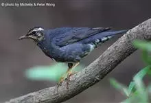 白眉地鸫是鸫科、地鸫属中型鸟类,体长21-24厘米。雄鸟通体暗蓝灰色或黑灰色,腹中部和尾下覆羽白色具长而粗著的白色眉纹,尾亦为黑灰或蓝灰色,外侧尾羽具宽的白色尖端。雌鸟上体橄榄褐色,下体皮黄白色,…全部>>
