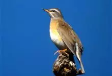 白眉鸫,是脊索动物门鸟纲雀形目鸫科鸫属中等体型的灰褐色鸫类。雄鸟头、颈、顺部至上颈灰色,具白色眉纹和下眼圈,眼先深色,上背至尾上覆羽橄榄褐色,上胸和两胁栗褐色,下胸、腹部和尾下覆羽白色,…全部>>