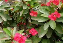 虎刺梅:别称铁海棠,是蔓生灌木植物。茎多分枝,长60-100厘米,直径5-10毫米,具纵棱,密生硬而尖的锥状刺,刺长1-1.5厘米,直径0.5-1.0 毫米,常呈3-5列排列于棱脊上,呈旋转。叶互生…全部>>
