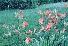 萱草 L.)是阿福花科、萱草属植物。根近肉质,中下部有纺锤状膨大;叶一般较宽;花早上开晚上凋谢,无香味,桔红色至桔黄色,内花被裂片下部一般有“∧”形采斑。这些特征可以区别于中国产的其他种类。…全部>>