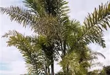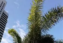 狐尾椰是棕榈科狐尾椰属的常绿乔木;木植高大通直,茎干单生,茎部光滑,有叶痕,略似酒瓶状;叶色亮绿族生茎顶,羽状全裂,小叶披针形,轮生于叶轴上,形似狐尾;穗状花序,分枝较多;雌雄同株;果卵形,…全部>>