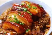 梅菜扣肉,汉族传统名菜,属客家菜 。制作材料有五花肉、梅菜、葱白、姜片等。全部>>