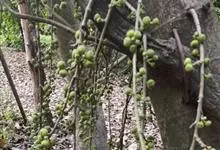 大果榕是桑科榕属的小乔木,株高可达10米;幼枝被柔毛;叶互生,宽卵状心形或近圆形;雄花无梗、匙形、花丝长,雌花生于雌株榕果内,子房白色;榕果簇生于树干基部或老茎短枝上、扁球形或陀螺形,…全部>>