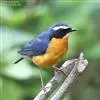 栗腹歌鸲是鹟科、歌鸲属小型鸟类,体长12-14厘米。雄鸟前额和头侧黑色,一条长而显著的白色眉纹在黑色的头部极为醒目,头顶至尾等其余上体灰蓝色,下体栗棕色或栗色。雌鸟上体橄榄褐色,下体白色沾赭棕色。…全部>>