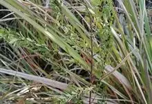 香根草 Roberty)是禾本科,香根草属多年生粗壮草本植物。秆丛生,高可达2.5米,直径中空。叶鞘无毛,叶舌短,叶片线形,直伸,扁平,下部对折,无毛,边缘粗糙,顶生叶片较小。圆锥花序大型顶生,…全部>>