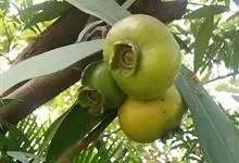 蒲桃 Alston)是桃金娘科蒲桃属植物,又名水蒲桃、香果、响鼓、风鼓。蒲桃为乔木植物,株高10米,主干极短,广分枝;小枝圆形;叶革质,披针形或长圆形,先端长渐尖,基部阔楔形,叶面多透明细小腺点,…全部>>