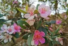 草莓番石榴是番石榴属植物,株高可达2米,树皮平滑,叶对生,倒卵形或椭圆形,先端钝,全缘,厚革质,叶形酷似榕树;花腋生,花冠白色;果实球形或椭圆形,红褐色;在春、夏季开花结果。…全部>>