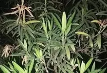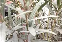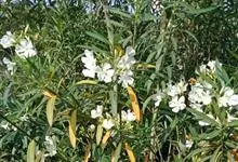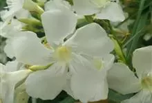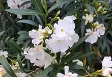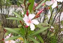 白花夹竹桃是夹竹桃科、夹竹桃属植物夹竹桃的栽培品种。常绿直立大灌木,枝条灰绿色;嫩枝条具稜,被微毛,老时毛脱落。叶3-4枚轮生,下枝为对生,叶面深绿,叶背浅绿色;侧脉纤细平行与中脉成直角;叶柄扁平,…全部>>