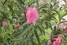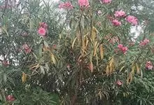 夹竹桃,又名红花夹竹桃、欧洲夹竹桃,是夹竹桃科夹竹桃属的一种常绿直立大灌木,枝条灰绿色,含水液。叶披针形,3叶轮生。聚伞花序顶生,花冠粉红至深红色,花冠漏斗状,有特殊香味。蓇葖果,圆柱形。种子长圆形,…全部>>