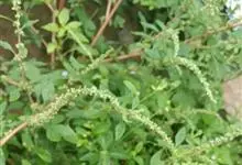 反枝苋是苋科苋属的一年生草本植物。株高达1米;茎密被柔毛;叶菱状卵形或椭圆状卵形,先端锐尖或尖凹,两面及边缘被柔毛,下面毛较密;穗状圆锥花序,顶生花穗较侧生者长;花被片长圆形或长圆状倒卵形,…全部>>