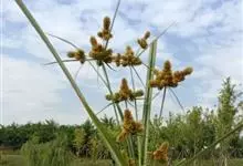 纸莎草是莎草科、莎草属的植物,具有粗壮的根状茎,高达2-3米,茎秆簇生,粗壮,直立,钝三棱形。叶退化呈鞘状,茎秆顶端着生总苞片,呈伞状簇生,总苞片叶状,披针形,顶生花序伞梗极多,细长下垂。瘦果灰褐色,…全部>>