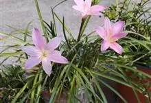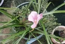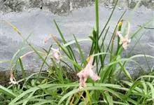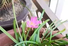 小韭兰学名韭菜莲又名风雨花、菖蒲莲、红玉帘和旱水仙,多年生草本,鳞茎卵球形,基生叶常数枚簇生,线形,扁平,花单生于花茎顶端,下有佛焰苞状总苞,花玫瑰红色或粉红色,蒴果近球形,种子黑色,花期夏秋。韭莲…全部>>
