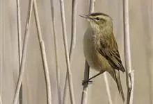 水蒲苇莺:小型鸟类,体长12-14厘米。雌雄两性羽色相似。上体褐色,头顶和背具粗著的黑褐色轴纹;腰和尾上覆羽较淡棕色,无轴纹;头顶黑褐色轴纹常沿纵轴排列成行;眉纹皮黄色或灰白色,…全部>>