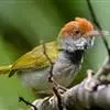 普通缝叶莺,是雀形目鹅科莺亚科缝叶莺属一种。体长10-14厘米,体重7-10克,雄鸟前额棕红,头顶至枕棕橄榄褐,上体橄榄绿染黄,飞羽及尾羽暗褐;繁殖期雄鸟的中央尾羽特形延长,下体淡皮黄白色。…全部>>