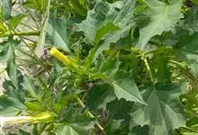 曼陀罗,茄科曼陀罗属一年生大型草本植物,全株光滑。有臭气;叶呈广卯形,边缘具不规则波状浅齿裂;花单生于枝杖间或叶腋,直立,有短梗;花萼是筒状裂片三角形,颜色为白色或淡紫色;果实为蒴果卵状,…全部>>
