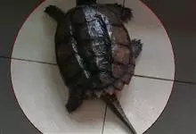 黑颈乌龟是龟鳖目淡水龟科乌龟属爬行动物;别名广东乌龟、广东草龟、黑点龟、黑颈水龟。黑颈乌龟体形较大,头较大,吻钝,略突出于上喙。头顶部黑色,侧面有黄绿色条纹;背甲黑色或棕褐色;中央有一条明显的脊棱,…全部>>
