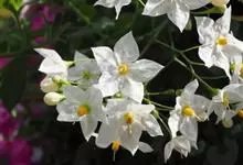 素馨叶白英,是双子叶植物纲、茄科、茄属的一种缠绕灌木,多分枝,光滑无毛,茎具纵向细条纹。聚伞式圆锥花序顶生或侧生;花白带蓝色;萼星形,萼齿长圆形;花冠辐形,具皱折;雄蕊着生于花冠筒喉部,花药黄色,子…全部>>