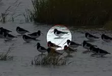 蛎鹬是鸻形目蛎鹬科蛎鹬属。蛎鹬的成鸟夏羽头、颈、胸和上体大部分为乌亮的黑色,腰到尾上覆羽白色,尾羽基部白色,端部黑色;翼上黑色,具有白横斑;下体胸部以下白色,翼下白色带黑缘;虹膜红色,啄和眼圈橘色,…全部>>