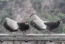 褐马鸡:是雉科、马鸡属鸟类。是中国特产珍稀鸟类,体高约60厘米,体长1-1.2米,体重5千克,全身呈浓褐色,头和颈为灰黑色,头顶有似冠状的绒黑短羽,脸和两颊裸露无羽,呈艳红色,尾巴高高竖起。翅短,…全部>>